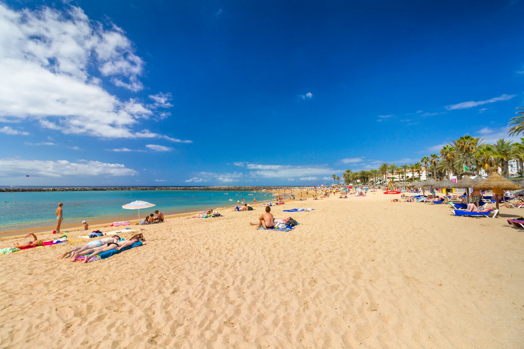 Playa de Fañabé is een van de bekendste stranden in het zuiden en voelt levendig en praktisch. Je hebt veel voorzieningen en je zit direct bij de boulevard, waardoor je makkelijk afwisselt tussen zonnen en even iets drinken. Dit strand werkt goed als je graag sfeer om je heen hebt en niet te veel wilt nadenken over waar je heen gaat.